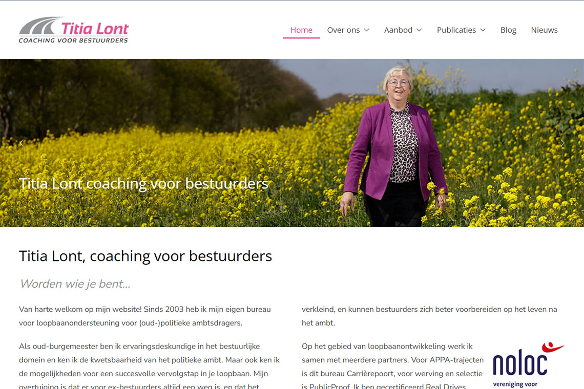 Redesign voor de website van Titia Lont coaching voor bestuurders www.titialont.nl