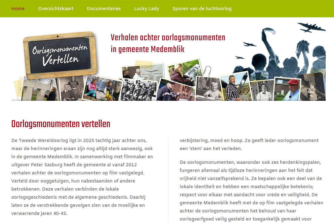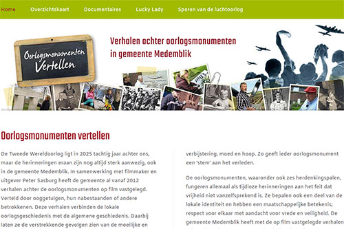Website/CMS voor Uitgeverij Peter Sasburg, naar een grafisch ontwerp van Vila Vormgeving over de verhalen achter 15 oorlogsmonumenten in de gemeente Medemblik www.oorlogsmonumentenmedemblik.nl
